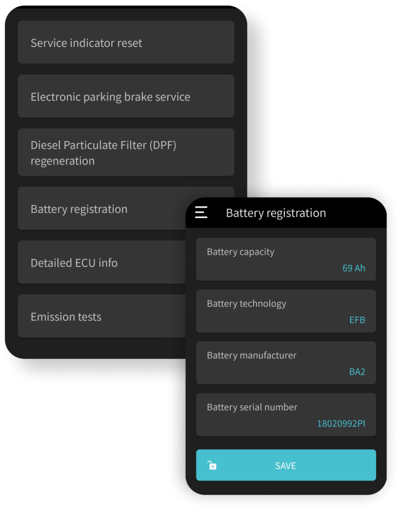 কাস্টমাইজ, কোডিং, ডায়াগনস্টিক, সার্ভিস এবং রিয়েল-টাইম ডেটা