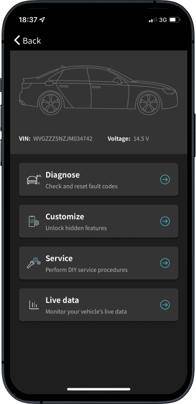 আমরা আপনার গাড়ির সার্ভিস ফাংশন কভার করেছি; সার্ভিস ইন্ডিকেটর রিসেট, ব্রেক প্যাড পরিবর্তন, ব্যাটারি রেজিস্ট্রেশন, ডিজেল পার্টিকুলেট ফিল্টার রি-জেনারেশন (DPF), থ্রটল বডি অ্যাডাপ্টেশন, ফুয়েল সিস্টেম প্রাইম এবং AUX হিটার আনলক, ইমিশন (Emission) টেস্ট ; সবই আপনি নিজেই শুধুমাত্র Carista ব্যাবহার করে করতে পারেন। ''একদম সিম্পল!'' মেকানিকের সাহায্য ছাড়াই নিজের গাড়ির রক্ষণাবেক্ষণ নিজে করুন। Carista- আপনাকে ফাংশন গুলো সবচেয়ে সহজে বিস্তারিত বর্ননা করে, তবুও যে কোনো প্রয়োজনে Apps এর ভিতরে পেয়ে যাবেন "Customer Support" সেখানে Volkswagen (VW) গ্রুপের দক্ষ অটোমোবাইল ইঞ্জিয়ার অপেক্ষা করছে আপনাকে সাহায্য করার জন্য।